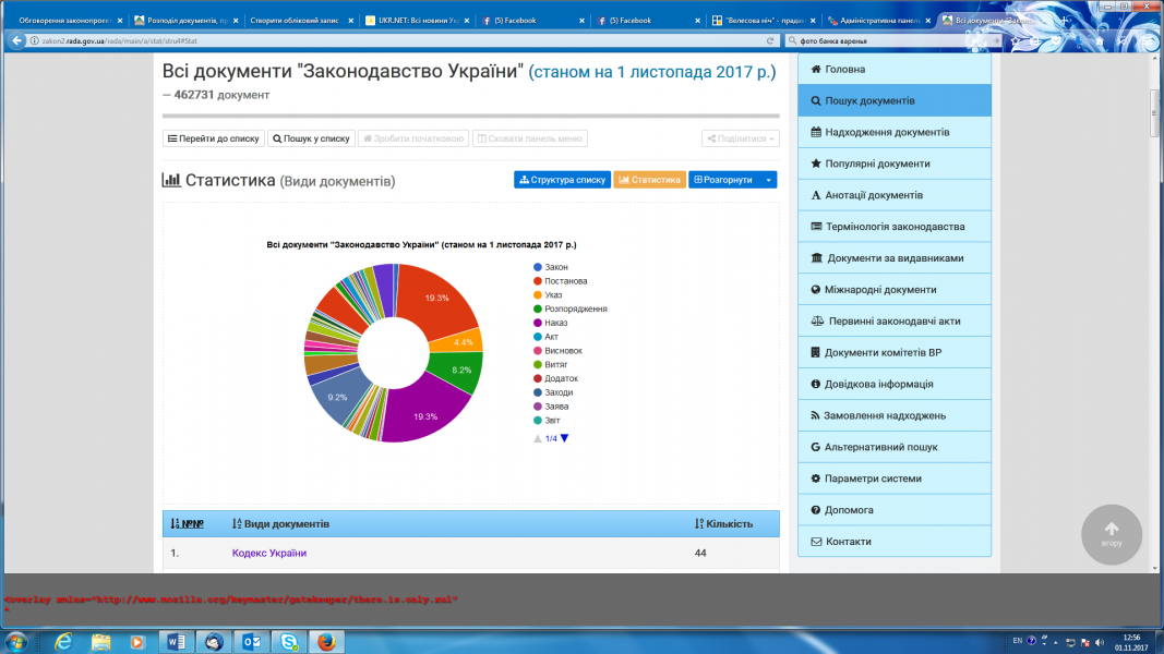 Зазначена база даних містить всі документи Верховної Ради України, Президента України, Кабінету Міністрів України, міністерств та відомств; міжнародні та історичні документи, розділи "Термінологія законодавства", "Анотації англійською мовою", "Первинні документи" тощо. До них кожного дня звертаються не менш 250 тисяч користувачів з України та всього світу.