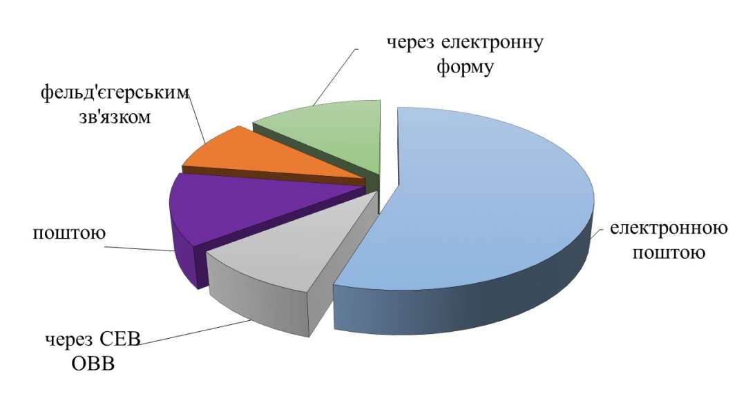 Упродовж серпня 2024 року в єдиній автоматизованій системі роботи з документами у Верховній Раді України зареєстровано 195 запитів на інформацію (далі – запит), з яких 107 надійшло електронною поштою, 26 – шляхом заповнення електронної форми запиту на офіційному веб-сайті Верховної Ради України, 25 – поштою, 19 – через СЕВ ОВВ, 18 – фельд’єгерським зв’язком.