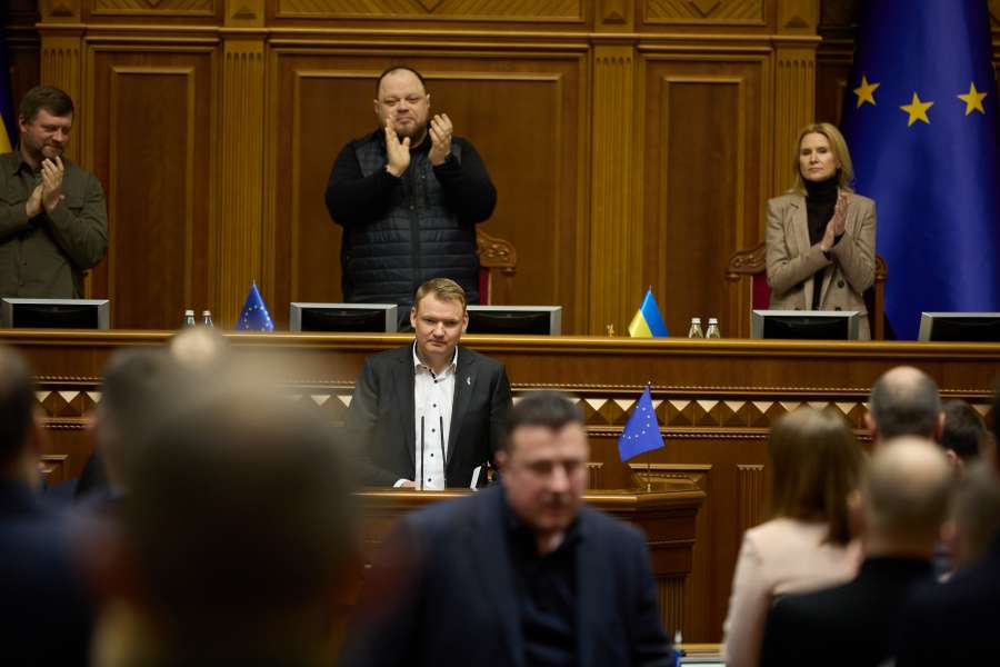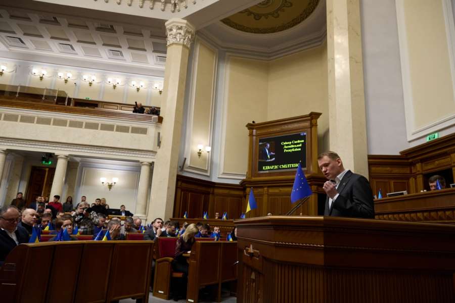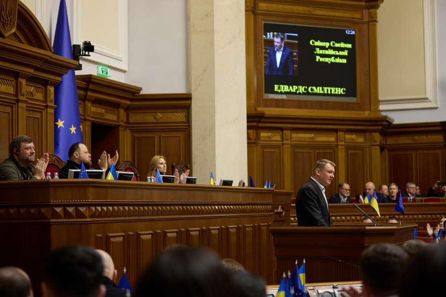 Для мене велика честь сьогодні звернутися до вас від імені Саейми Латвії. Для всього латвійського народу у цей складний час, коли Україна бореться за весь цивілізований світ, який протистоїть російській агресії, ми, латиші, разом з вами.