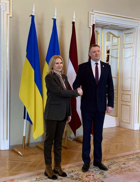 Заступниця Голови Верховної Ради України Олена Кондратюк в межах поїздки до Латвійської Республіки зустрілася в Ризі зі Спікером Саейми Латвії Едвардсом Смілтенсом.