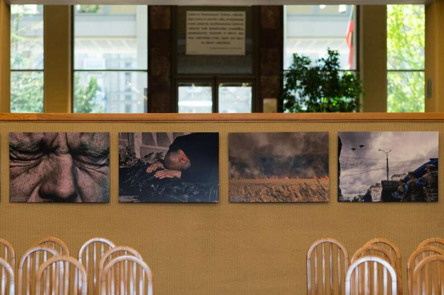 Також у межах першого робочого дня візиту Перший заступник Голови Парламенту України відвідав у литовському Сеймасі фотовиставку українських фотографів «Вони захищають нас», що показує боротьбу Українського народу та наслідки військової агресії держави-терориста.