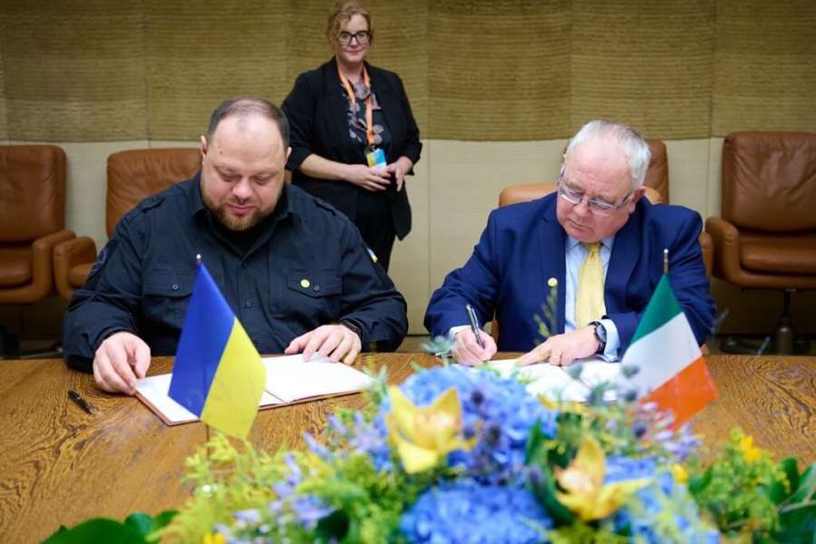 Під час офіційного візиту до Чеської Республіки Голова Верховної Ради України Руслан Стефанчук та Голова Дойлу Парламенту Ірландії Шон О`Фаріл підписали Меморандум про взаєморозуміння.