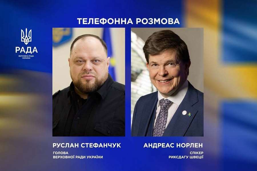 Голова Верховної Ради України Руслан Стефанчук провів телефонну розмову з Головою Парламенту Швеції Андреасом Норленом, під час якої обговорив ключові аспекти українсько-шведської співпраці.