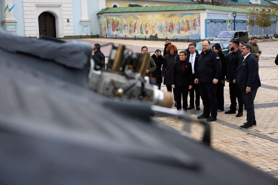 Після зустрічі Руслан Стефанчук та Ана Брнабич вшанували пам’ять загиблих воїнів біля Стіни пам’яті полеглих за Україну на Михайлівській площі.