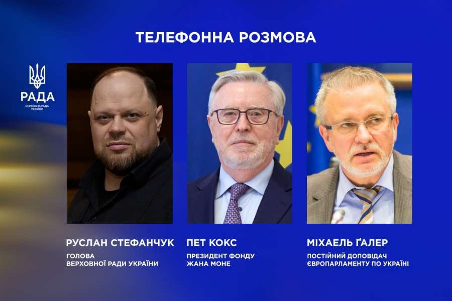 Голова Верховної Ради України Руслан Стефанчук провів онлайн-розмову з Президентом Фонду Жана Моне Петом Коксом та постійним доповідачем Європейського парламенту по Україні Міхаелем Ґалером на тлі триваючих масованих атак рф проти українських міст і енергетичної інфраструктури.