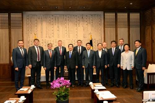 The deputy group met with Spe\aker of the National Assembly of South Korea Chung Sye-kyun. The participants in the meeting discussed a number of important issues for further deepening of the bilateral interparliamentary cooperation: assistance in restoration of economic partnership; intensification of the parliaments' role in celebration of the 25th anniversary of establishment of diplomatic relations between the two states and the 80th anniversary of deportation of ethnic Koreans from Far East in 2017; full liberalization of the visa regime for short-term trips; assistance in intensification of work of the Joint Committee on scientific-technological cooperation and organization of the II South Korea-Ukraine Economic Forum.