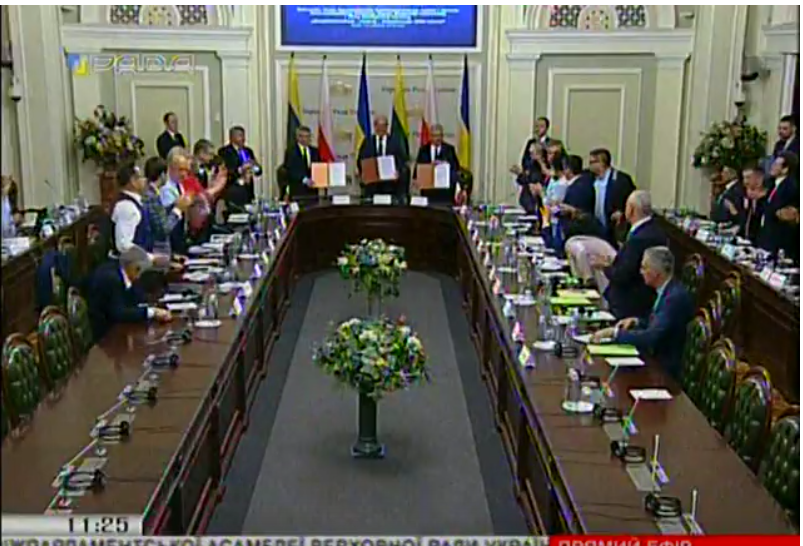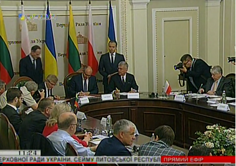 The paper was subscribed by the Chairman of the Verkhovna Rada of Ukraine Andriy Parubiy together with the Speaker of the Seimas of the Republic of Lithuania Viktoras Pranckietis and the Marshal of the Senate of the Republic of Poland Stanislaw Karczewski.