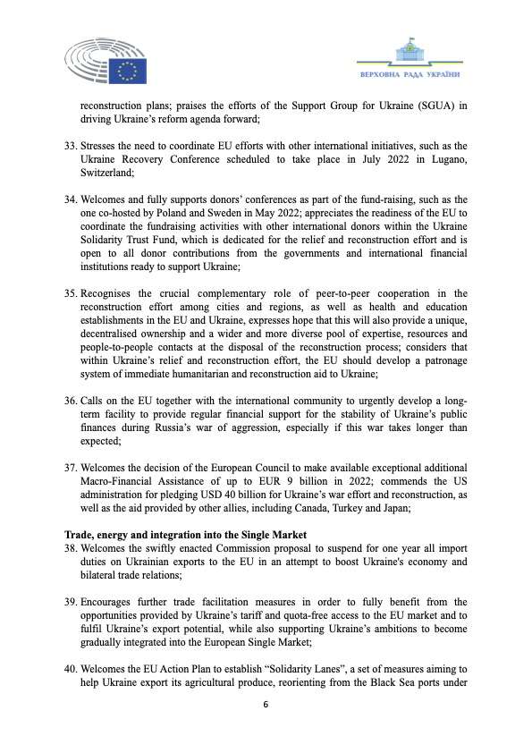 - Emphasize that the EU needs to significantly increase funding under the European Peace Fund and strengthen its arms supply to Ukraine, as Ukraine spends or loses almost € 400 million a day in military equipment each day of the war. If the war continues, it will total more than 100 billion euros by the end of this year.