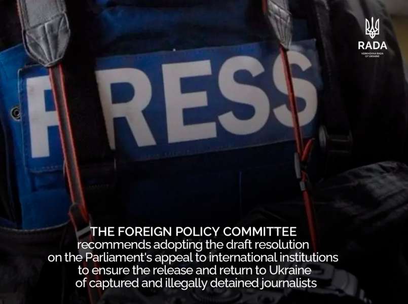 The Committee recommends that the Verkhovna Rada of Ukraine adopt the draft Resolution on the Appeal of the Verkhovna Rada of Ukraine to the United Nations, Parliaments and Governments of the European Union and NATO member states, the European Parliament, the Parliamentary Assembly of the Council of Europe, the OSCE Parliamentary Assembly, the NATO Parliamentary Assembly, and the International Committee of the Red Cross, International Federation of Journalists, European Federation of Journalists, International NGO Committee to Protect Journalists, International NGO Reporters Without Borders to ensure the release and return to Ukraine of captured and illegally detained journalists (including civilian journalists), introduced by MPs Y. Yurchyshyn and others, taking into account the proposals and amendments of the Committee and the Ministry of Foreign Affairs of Ukraine.