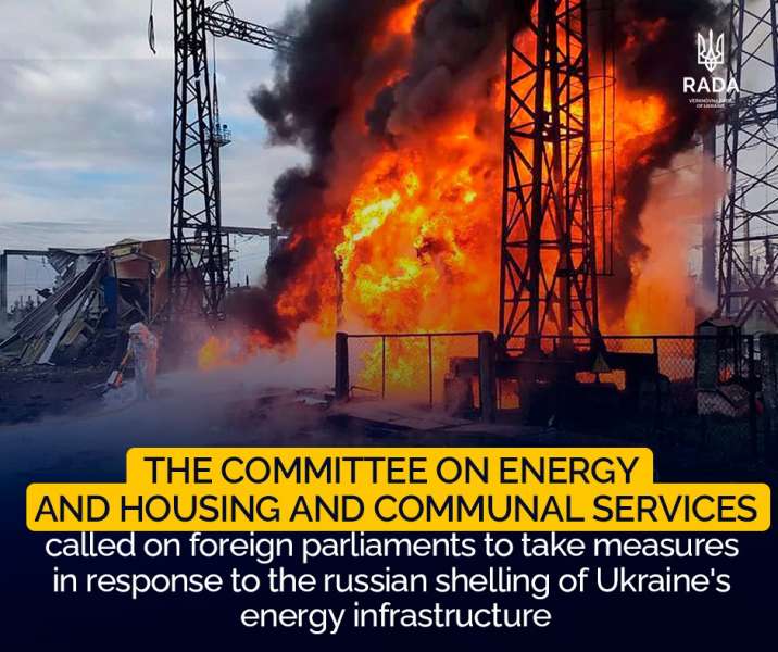 MPs – members of the Committee on Energy, Housing and Utilities Services sent an appeal to the parliaments of foreign countries regarding the critical situation in the energy infrastructure of Ukraine as a result of massive attacks by the russian federation.