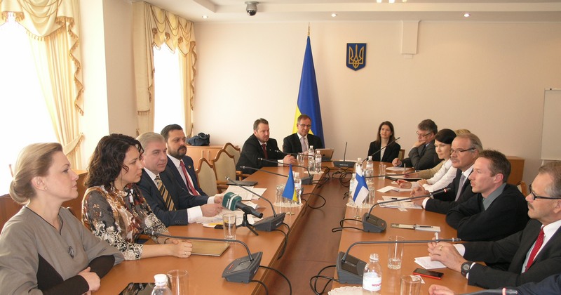 The Secretary of the Committee on Judicial Policy Nataliya Ahafonova, member of the Committee on Budget Andriy Derkach, the First Deputy Chairperson of the Committee on Customs and Tax Policy Oksana Prodan participated in the meeting. They introduced Finish delegation to the competence of their Committees and participated in the discussion of issues of foreign investments in agroindustrial sector of Ukraine, production of animal products etc.