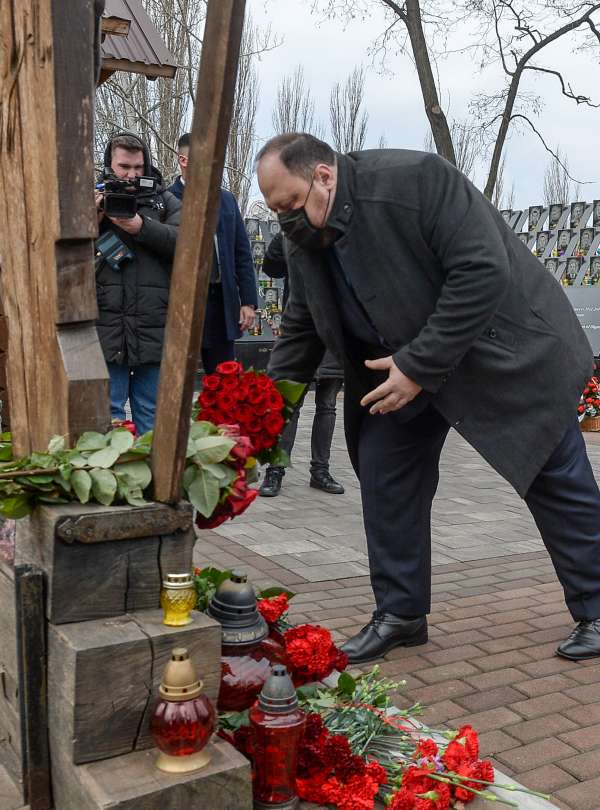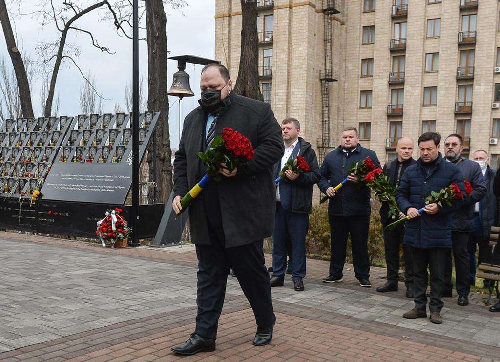On the occasion of the Day of Dignity and Freedom, Chairperson of The Verkhovna Rada of Ukraine Ruslan Stefanchuk honored the memory of the Heroes of the Heavenly Hundred. The Speaker of the Parliament laid flowers at the foot of the memorial cross.