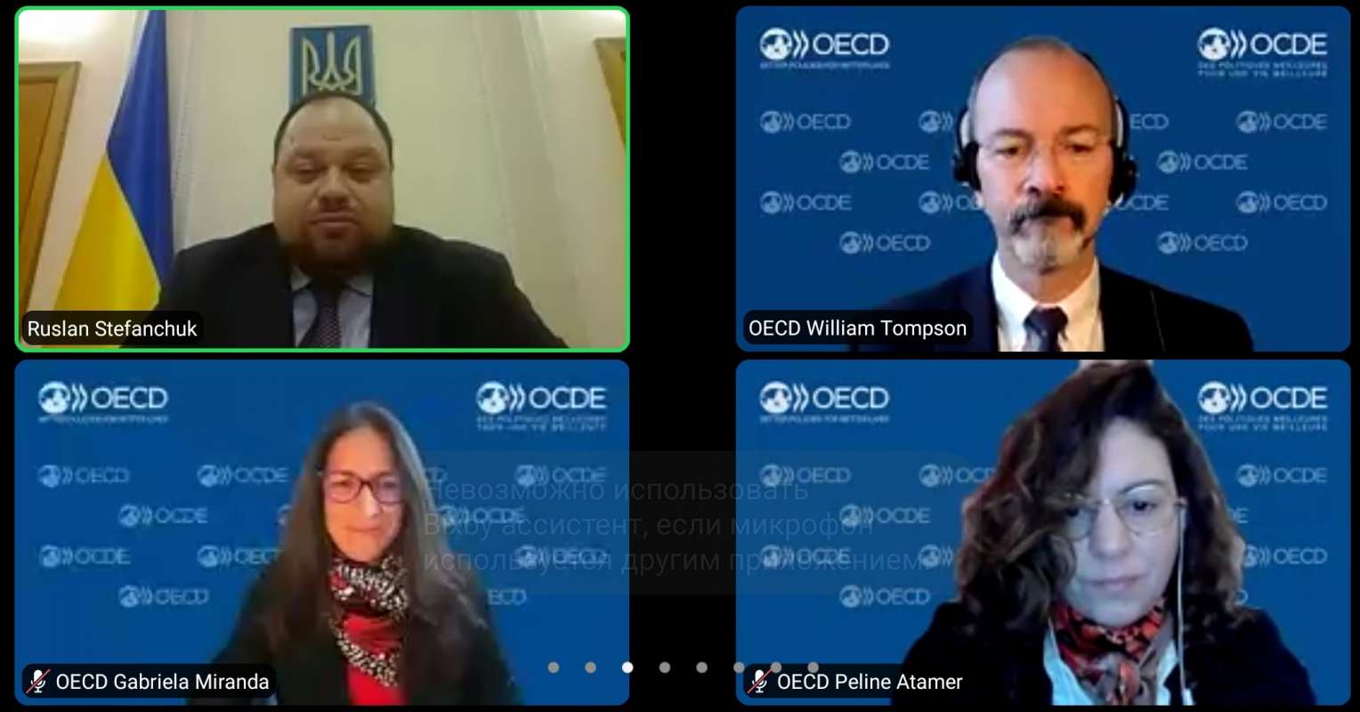The Speaker of the Parliament of Ukraine discussed with the participants of the webinar ways to strengthen ties between the OECD and the Verkhovna Rada of Ukraine and areas for further cooperation. Particular attention was paid to the discussion of the best world standards in the field of effective accountability, transparency of decision-making processes.