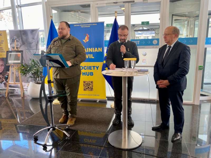 "I am glad I finally have the opportunity to visit the Ukrainian Hub. First of all, I would like to thank the European Parliament and the President, Ms. Roberta Metsola," said Ruslan Stefanchuk.