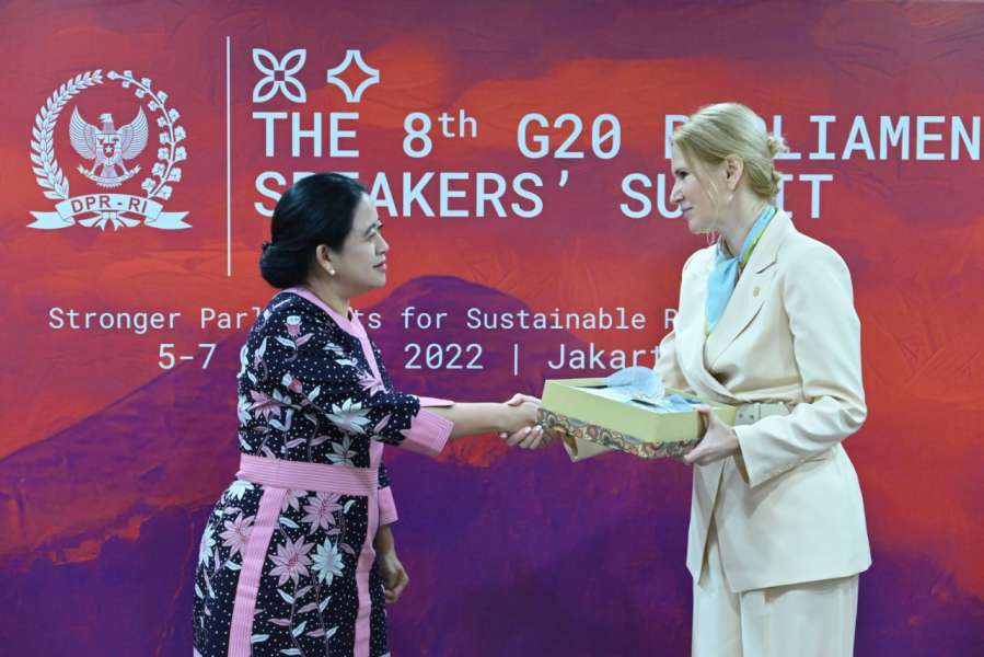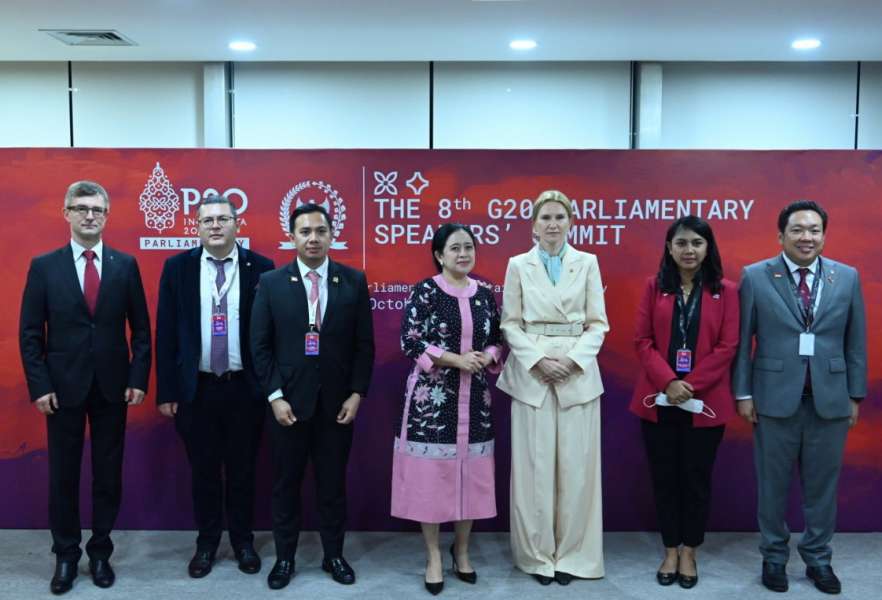 Olena Kondratiuk said that we are glad to resume the Ukrainian-Indonesian interparliamentary dialogue at such a high level and are grateful for the invitation of the Verkhovna Rada delegation to participate in the 8th G20 Heads of Parliament Summit.
