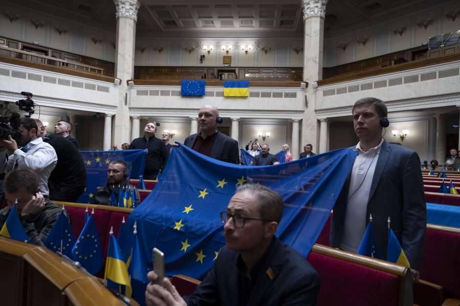 When I first addressed this great Parliament of Heroes, I underlined that Ukraine’s future is within the European Union. I reiterate that now. We were with you then, we are with you now and we will be with you for as long as it takes.