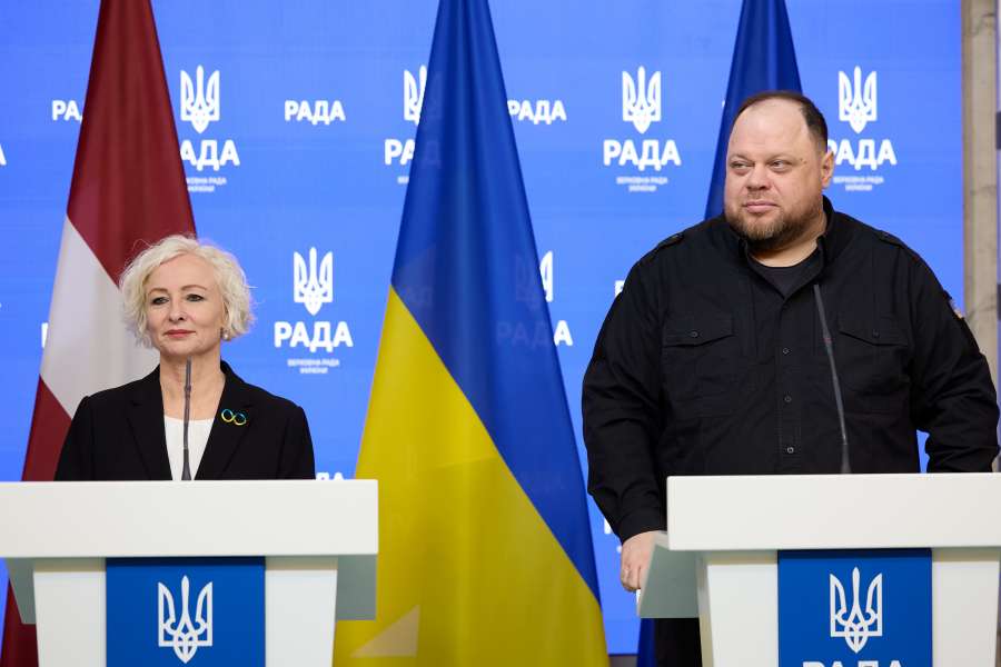 After meeting with the delegation of the Saeima of the Republic of Latvia, the Chairman of the Verkhovna Rada of Ukraine, Ruslan Stefanchuk and the Speaker of the Latvian Parliament, Daiga Mierinė held a joint briefing for media representatives.