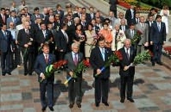V.M.Lytvyn, Chairman of the Verkhovna Rada of Ukraine, laid Flowers to the Monuments to T.Shevchenko and M.Hrushevskyi in Kyiv on the Occasion of the 20th Anniversary of Independence of Ukraine
