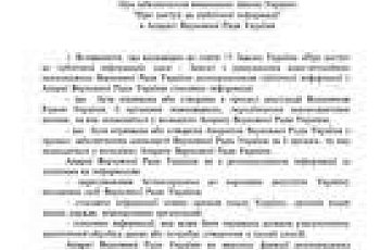 Decree of the Chairman of The Verkhovna Rada of Ukraine "On Support of Implementation of the Law of Ukraine "On Access to the Public Information" in the Verkhovna Rada of Ukraine Secretariat"