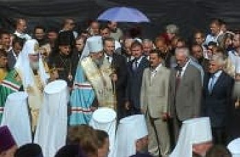 V.M. Lytvyn, Chairman of the Verkhovna Rada of Ukraine visited Solemn Public Prayer on Volodymyrivska Hirka in Kyiv that was also visited by Primate of the Orthodox Church in Russia, Patriarch of Moscow and All Russia Kirill and Primate of the Orthodox Church in Ukraine (Moscow Patriarchate) Volodymyr