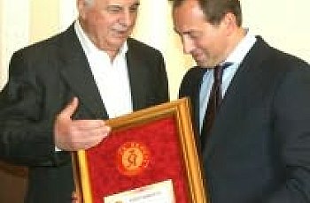 Leonid Kravchuk, Honorary Chairman of the Ukrainian National Embassy, the First President of Ukraine has presented Mykola Tomenko with the Gold Medal and the Certificate of International Program on the Consumers Rights Protection "Quality Mark"