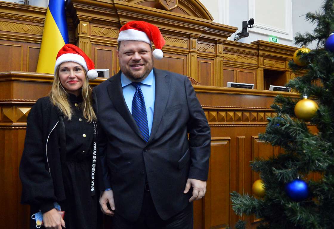 До Дня Святого Миколая Голова Верховної Ради України Руслан Стефанчук узяв участь у запаленні новорічних вогнів на Парламентській ялинці на Площі Конституції