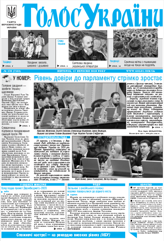 Повний випуск «Голосу України» від 18.09.2019 на сайті http://www.golos.com.ua