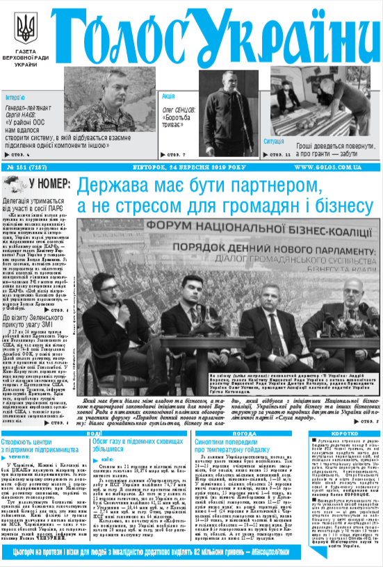 Повний випуск «Голосу України» від 24.09.2019 на сайті http://www.golos.com.ua