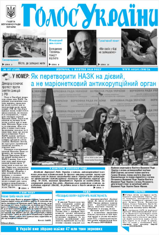 Повний випуск «Голосу України» від 01.10.2019 на сайті http://www.golos.com.ua