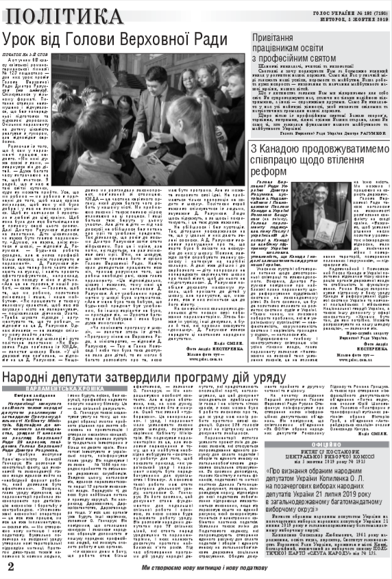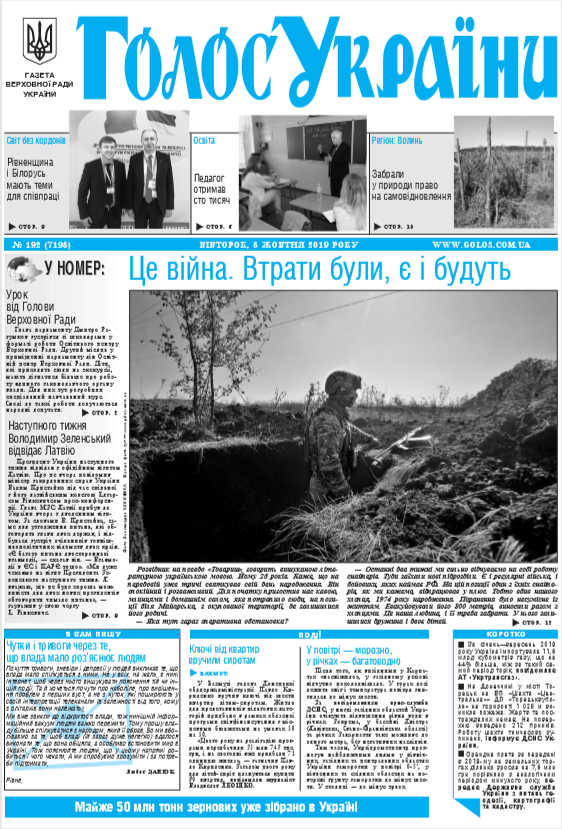 Повний випуск «Голосу України» від 08.10.2019 на сайті http://www.golos.com.ua