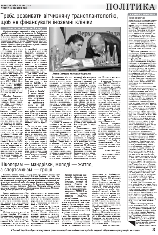 Повний випуск «Голосу України» від 10.10.2019 на сайті http://www.golos.com.ua