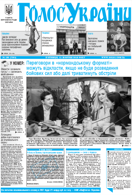 Повний випуск «Голосу України» від 11.10.2019 на сайті http://www.golos.com.ua