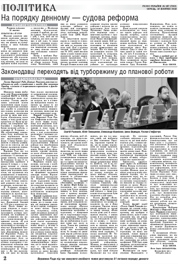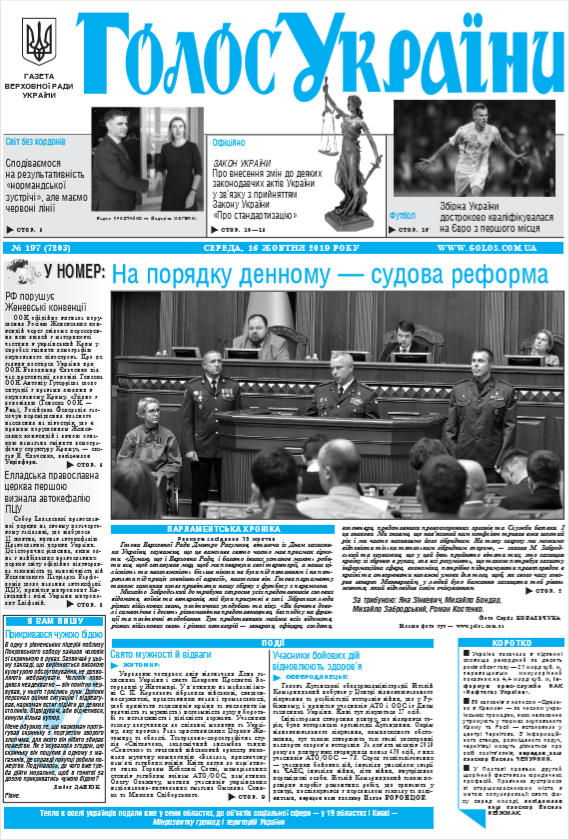 Повний випуск «Голосу України» від 16.10.2019 на сайті http://www.golos.com.ua