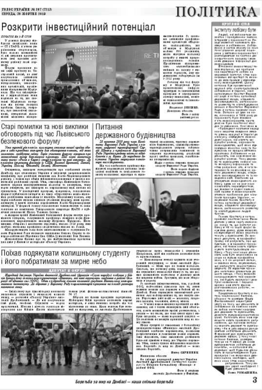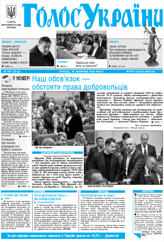 Повний випуск «Голосу України» від 30.10.2019 на сайті http://www.golos.com.ua