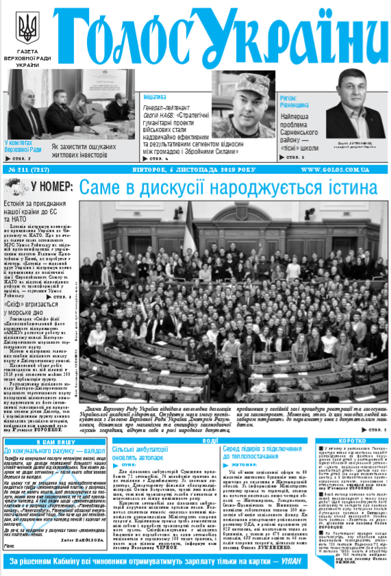 Повний випуск «Голосу України» від 05.11.2019 на сайті http://www.golos.com.ua