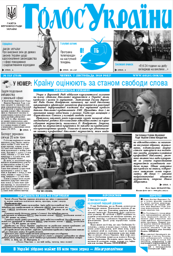 Повний випуск «Голосу України» від 07.11.2019 на сайті http://www.golos.com.ua