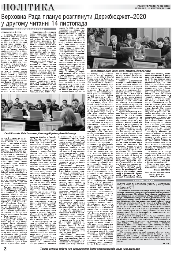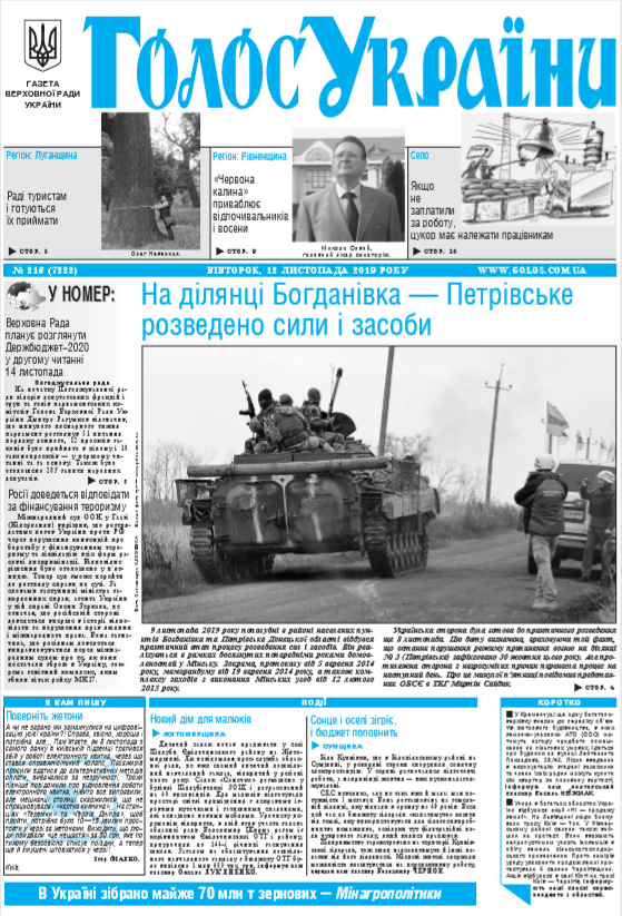 Повний випуск «Голосу України» від 12.11.2019 на сайті http://www.golos.com.ua
