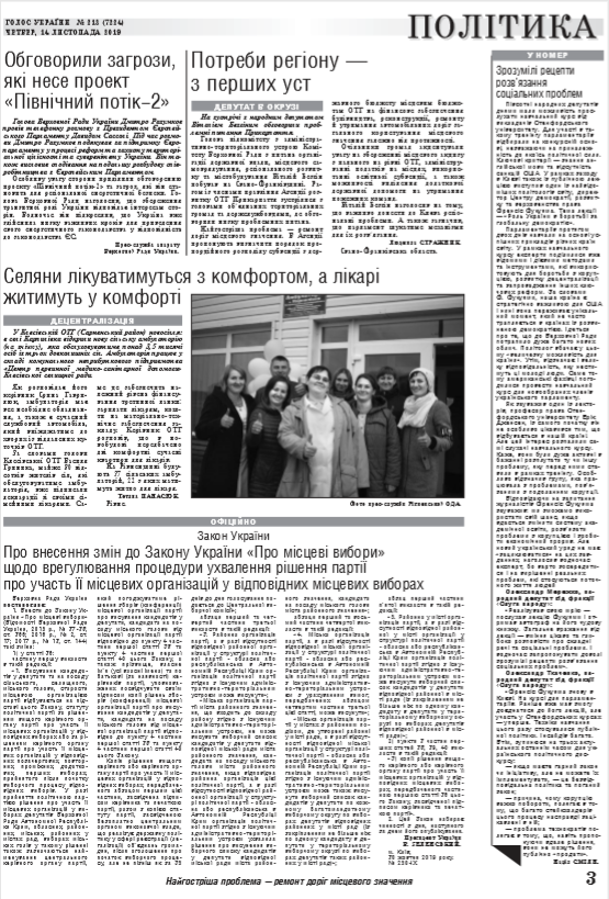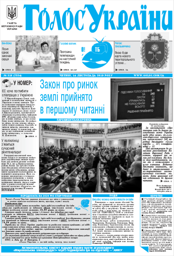 Повний випуск «Голосу України» від 14.11.2019 на сайті http://www.golos.com.ua
