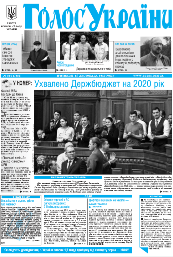 Повний випуск «Голосу України» від 15.11.2019 на сайті http://www.golos.com.ua