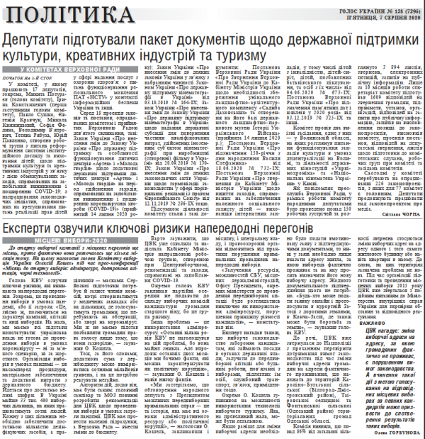 Повний випуск «Голосу України» від 07.08.2020 на сайті http://www.golos.com.ua