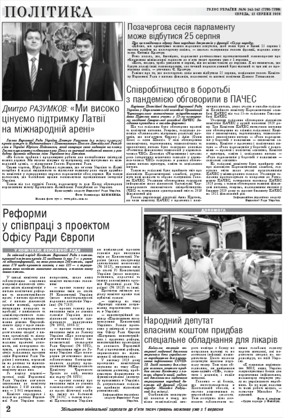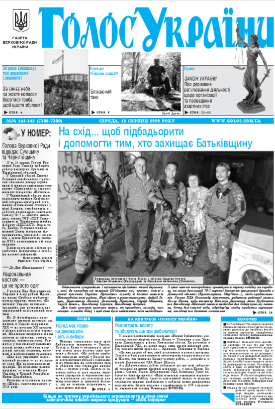 Повний випуск «Голосу України» від 12.08.2020 на сайті http://www.golos.com.ua