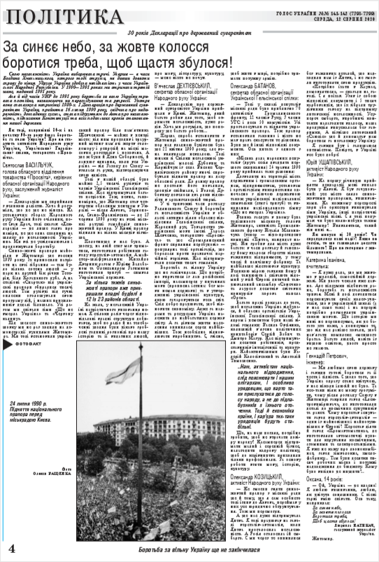 Але й від часів УНР до 1991 року боротьба за волю України тривала постійно, незважаючи на переслідування та репресії. Укотре вона спалахнула наприкінці 1980-х. І Декларація про державний суверенітет України, прийнята 16 липня 1990 року, свідчила про недаремність докладених зусиль, стала підґрунтям до Акта про незалежність, підписання Конституції та всіх подальших кроків становлення нашої держави. (читайте у «Голосі України» на 4 стор. >>> article/334476).
