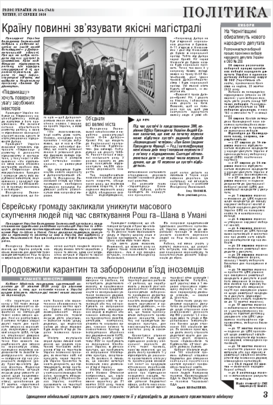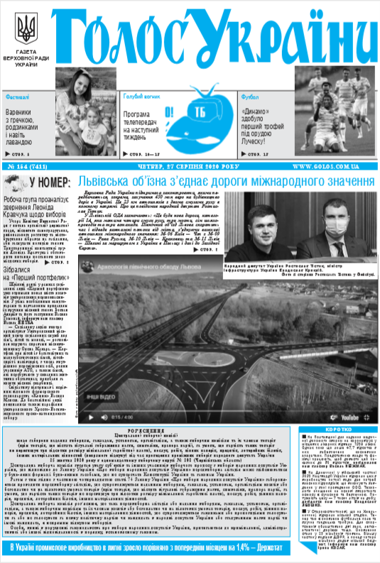 Повний випуск «Голосу України» від 27.08.2020 на сайті http://www.golos.com.ua