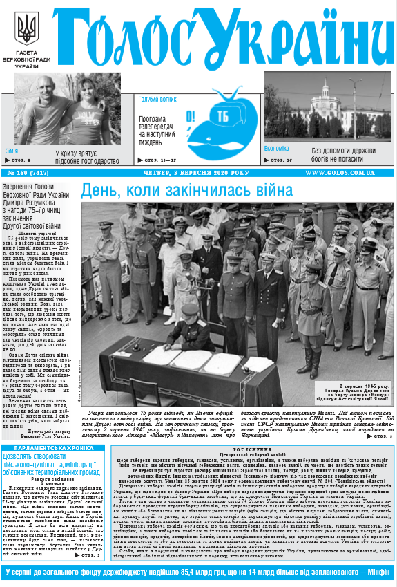 Повний випуск «Голосу України» від 03.09.2020 на сайті http://www.golos.com.ua