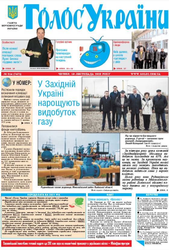 Повний випуск «Голосу України» від 19.11.2020 на сайті http://www.golos.com.ua