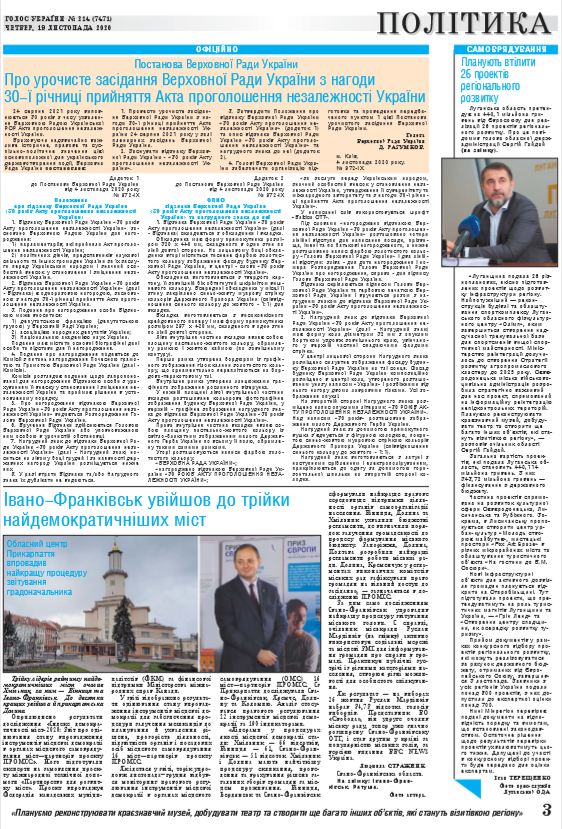 жовтня 2020 року. (читайте у «Голосі України» на 1-2 стор. >>> article/338569).