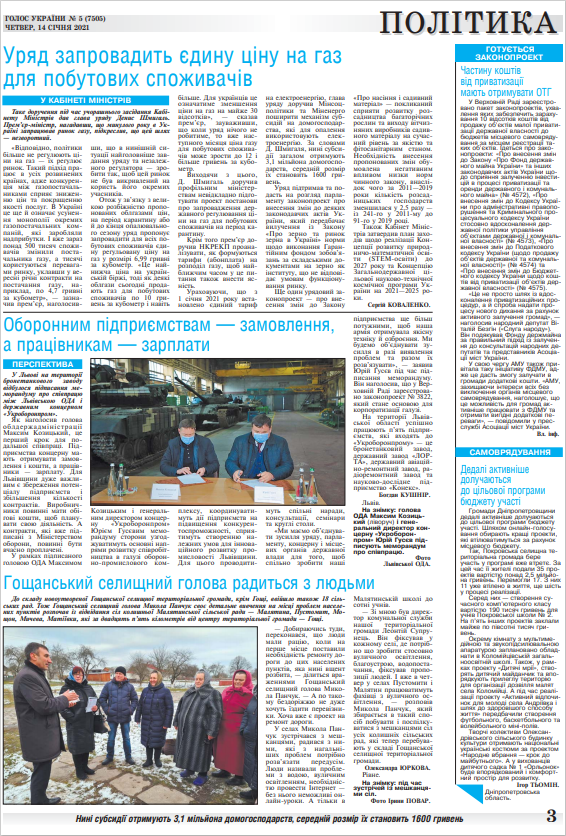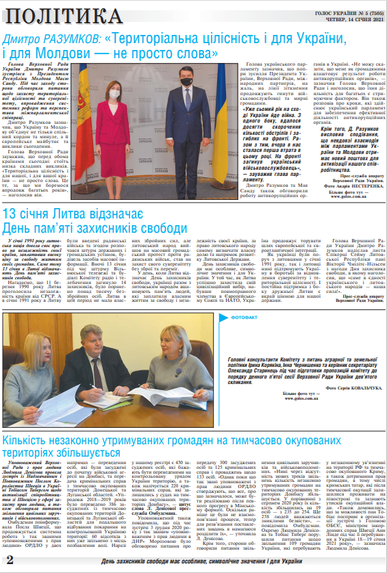Повний випуск «Голосу України» від 14.01.2021 на сайті http://www.golos.com.ua
