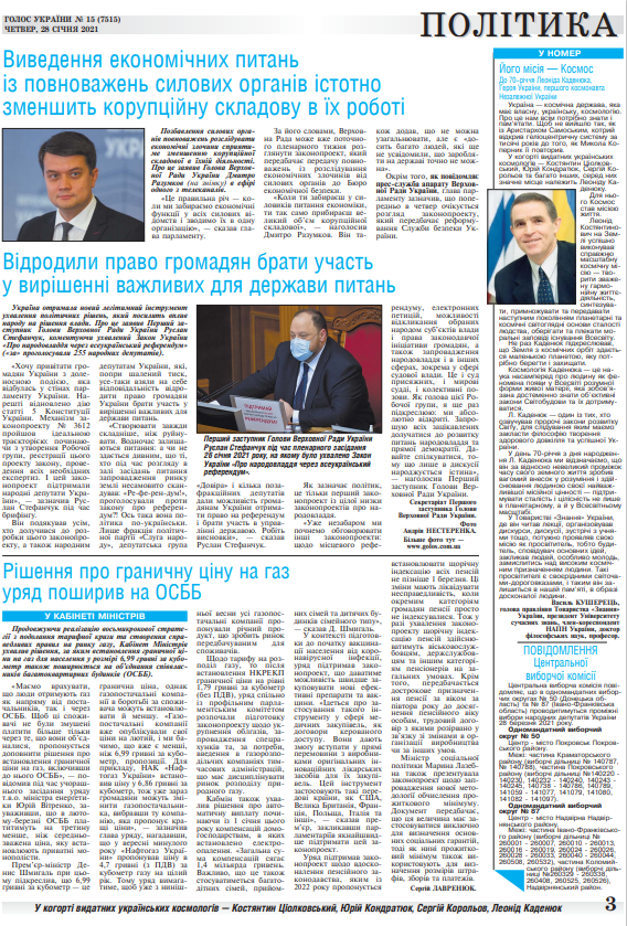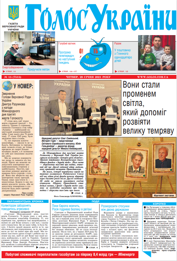 Повний випуск «Голосу України» від 28.01.2021 на сайті http://www.golos.com.ua