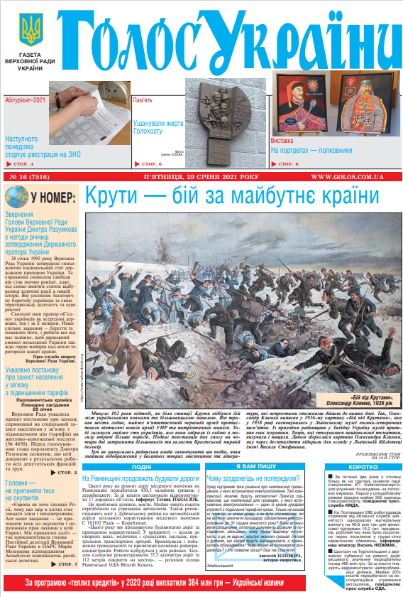 Повний випуск «Голосу України» від 29.01.2021 на сайті http://www.golos.com.ua