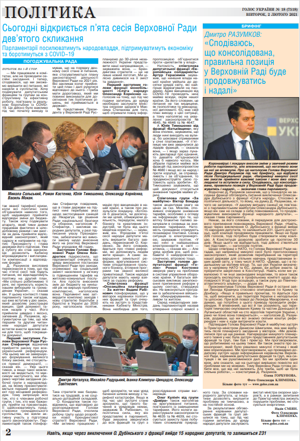 Повний випуск «Голосу України» від 02.02.2021 на сайті http://www.golos.com.ua